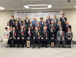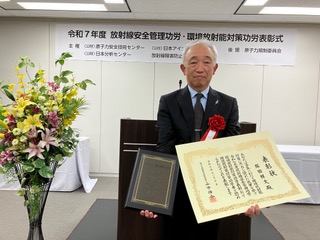 (公財)環境科学技術研究所の元主任研究員である塚田祥文先生(福島大学名誉教授)が、令和7年度環境放射能対策功労表彰を受けました。本表彰は、環境放射能対策の向上のために尽力して優れた成果を挙げた個人を表彰することにより、関係者のさらなる意欲の向上と安全確保に対する国民の理解の増進に資することを目的としています。受賞者には原子力規制委員会から原子力規制委員会委員長賞が贈られました。