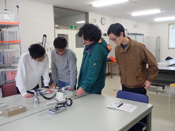 12月16、17日、弘前大学の理工学部環境防災学科の3年生2名、人文社会科学部文化創生課程文化資源学コースの3年生1名の合計3名が実習に訪れました。本実習は、弘前大学の学部横断型副専攻プログラム「放射線総合科学」の科目の一つであり、環境研は学外協力機関として参画しています。また、原子力規制庁の原子力規制人材育成事業の一環でもあります。