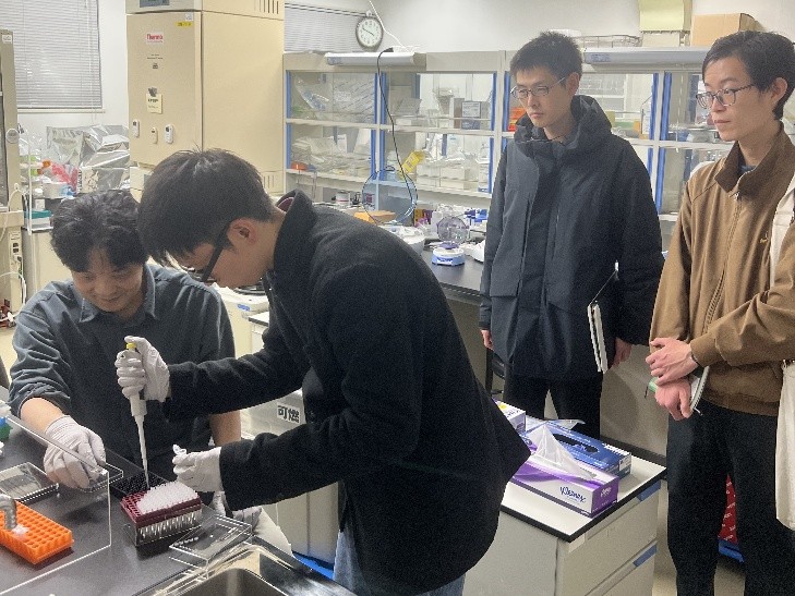 | サーベイメータ取扱実習 | DNA切断部位の可視化実習(ピペット操作体験の様子) |