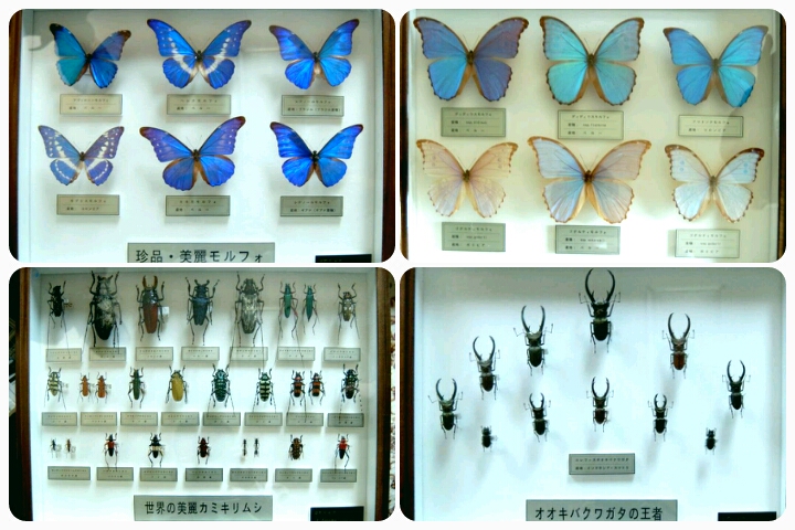 青森県産から外国産まで、たくさんのクワガタ・カブトムシ、そして今年は綺麗な蝶の実物標本を展示