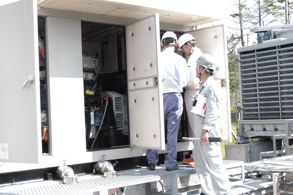 | 特別高圧受電設備の点検の様子 | 自家発電機設備の試運転の様子 |