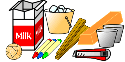 牛乳の空きパック、クレヨン、カッター(クレヨンを削る)